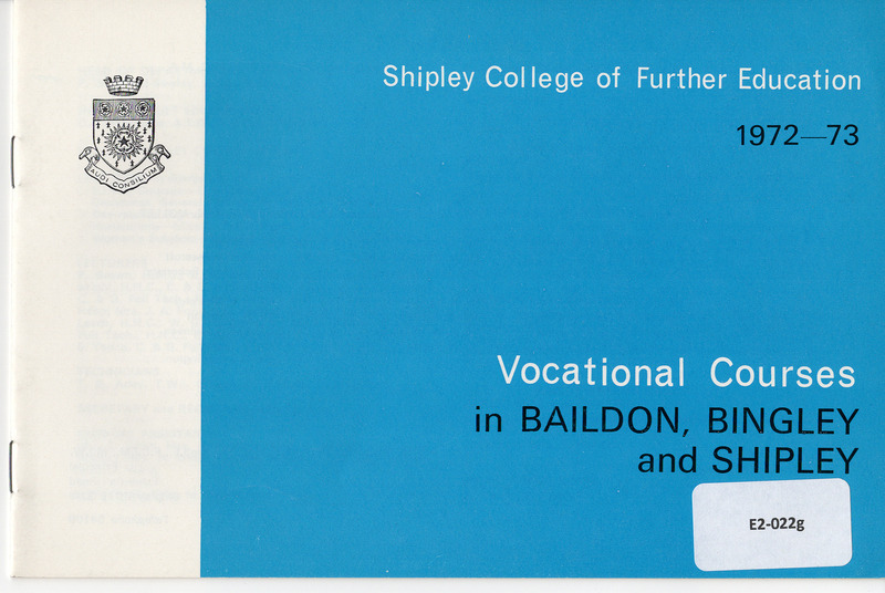 - Shipley College Documents: Vocational courses brochure 1972-73 - front cover