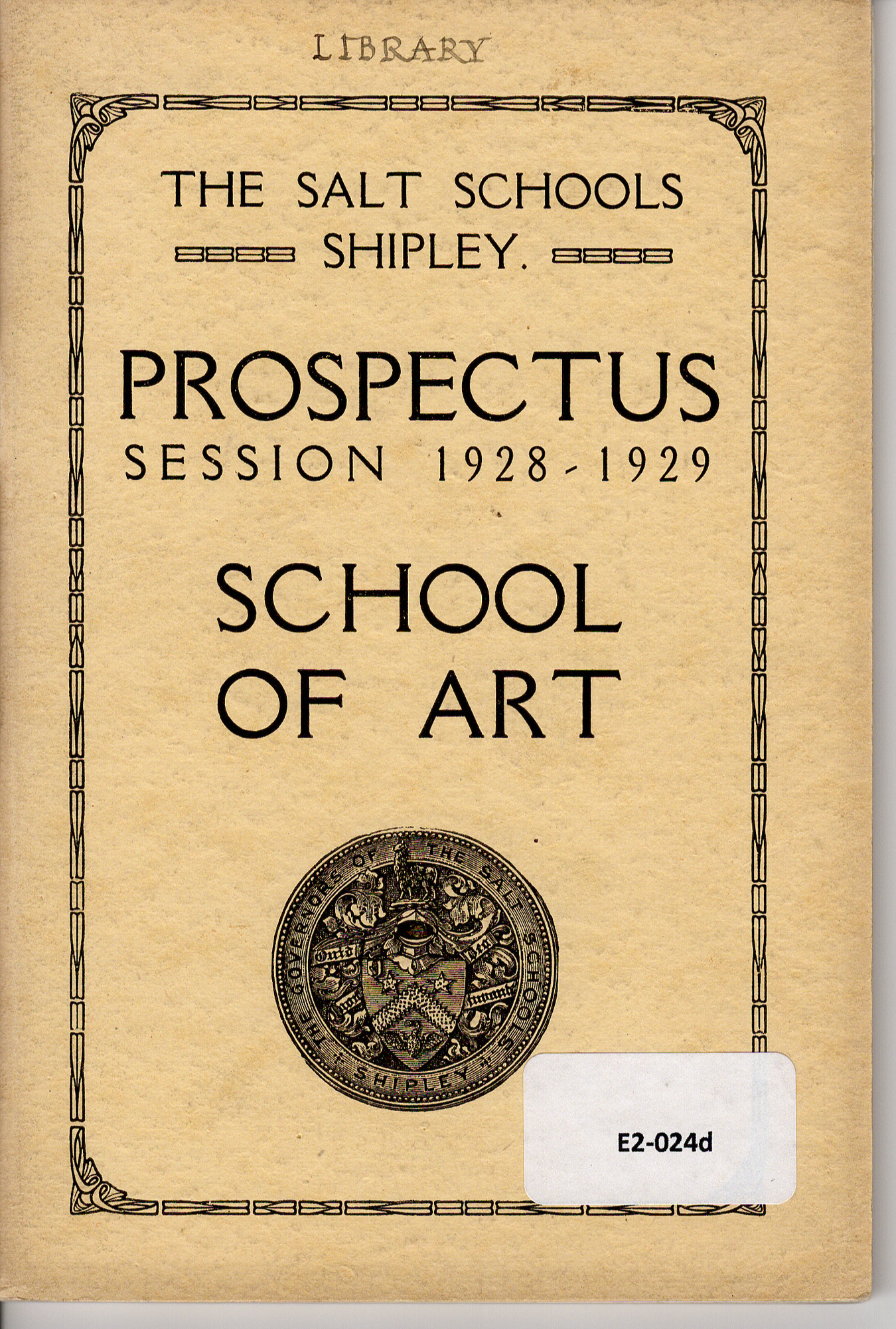 School of Art Prospectus: Prospectus 1928-1929 - front cover