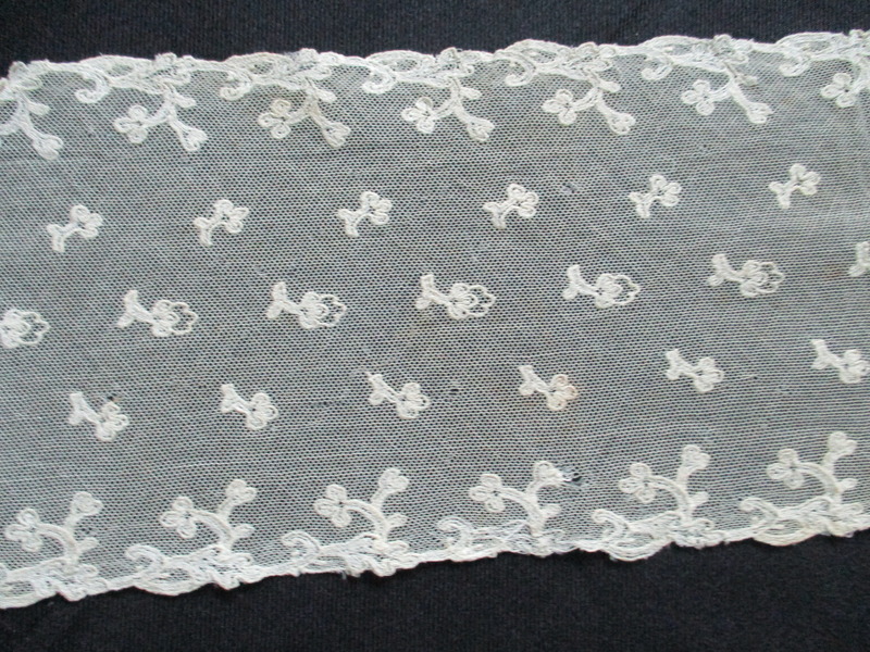 Cream lace sash.: Embroidered detail on cream lace sash.