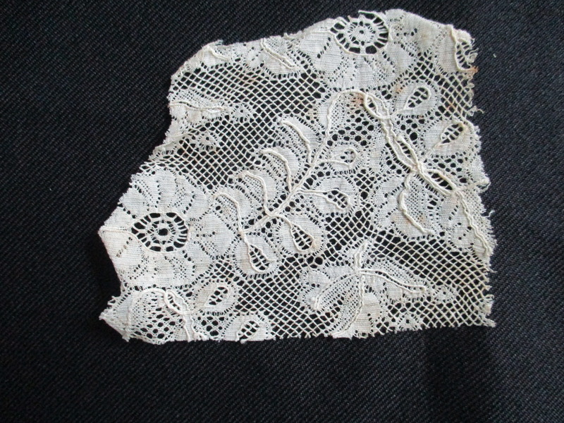 - Four pieces of cream lace.: Small piece of cream silk lace.
