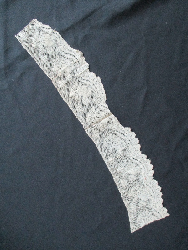 Piece of cream silk lace edging.: Cream silk lace edging - full view.