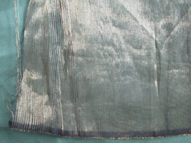 - Piece of gold satin material: Frayed corner of gold satin material.