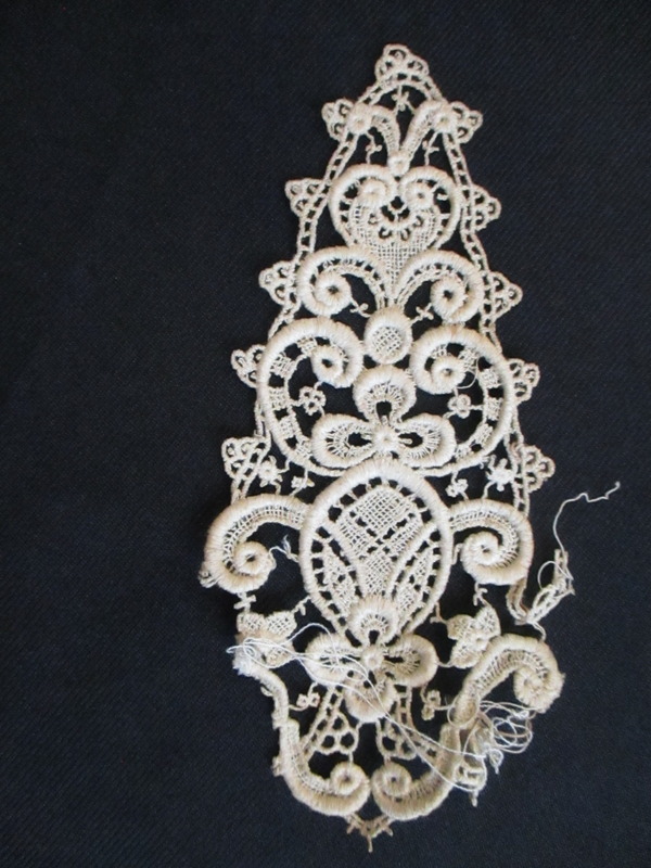 - 4 triangular pieces of silk lace decoration.: Triangular lace motif.