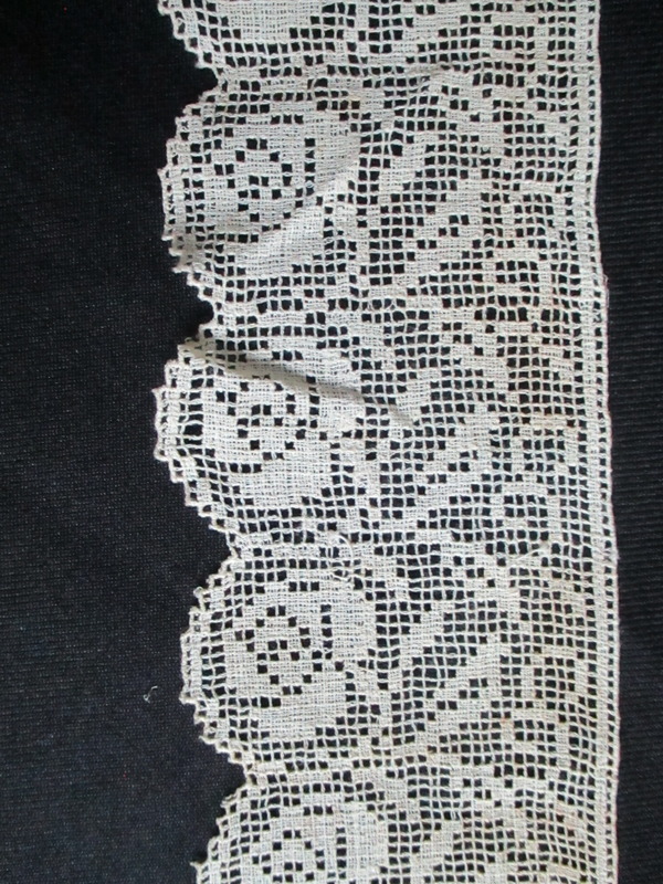 - Length of cream lace edging/border.: Length of cotton lace edging with rose detail. (ii)