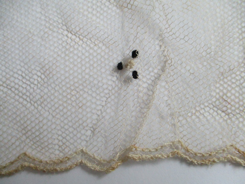 - Piece of decorated cream netting.: Embroidery detail on nylon netting showing french knots. (ii)
