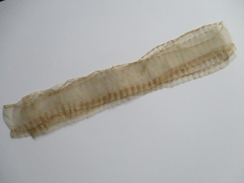 - Piece of cream silk edging/trim.: Long length of cream silk ribbon/edging folded. (ii)