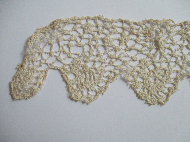 Length of cream silk lace.: End detail of cream silk lace. (i)