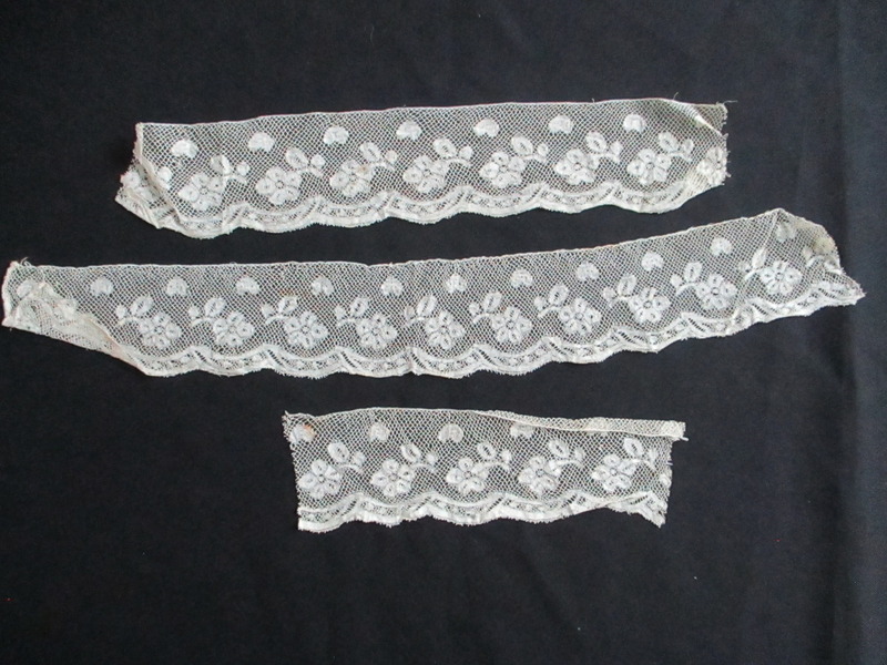 - Three pieces of cream silk lace trim.: Three pieces of cream silk lace trim. (ii)