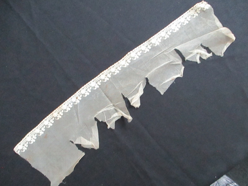 Piece of decorated nylon netting.: Piece of decorated cream netting. (i)