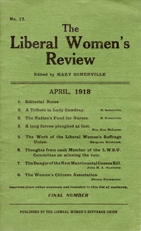 The Liberal Women's Review: Front cover