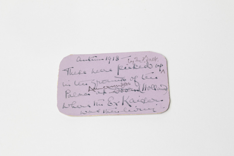 Tin box containing acorns: reverse view of card