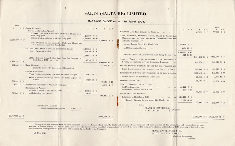 - Salts (Saltaire) Ltd Directors Report and Statement of Accounts : 31st March 1931: Pages 4-5