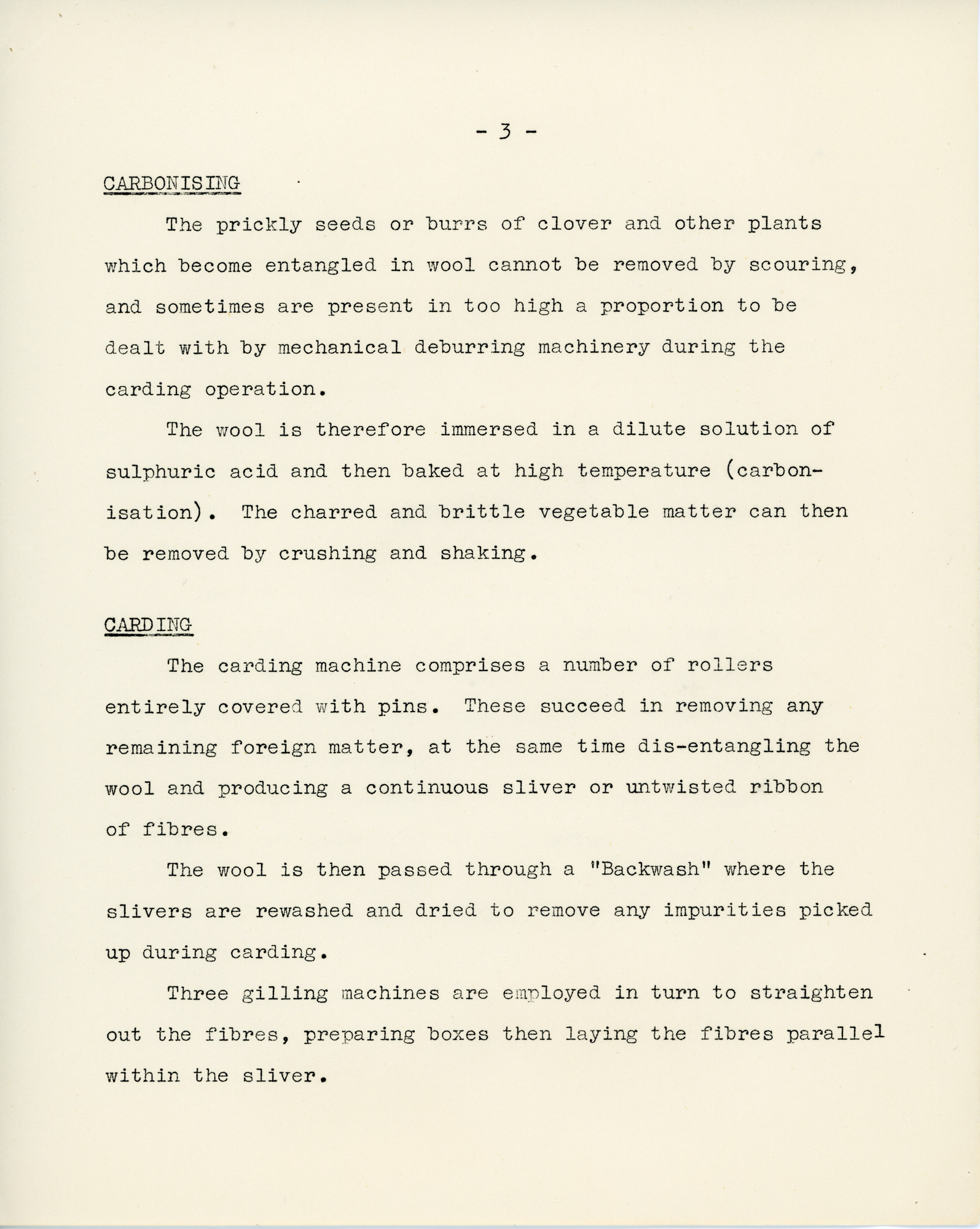 - Main Processes in the Worsted Textile Spinning and Manufacturing Industry: Page 3 - Carbonising and Carding