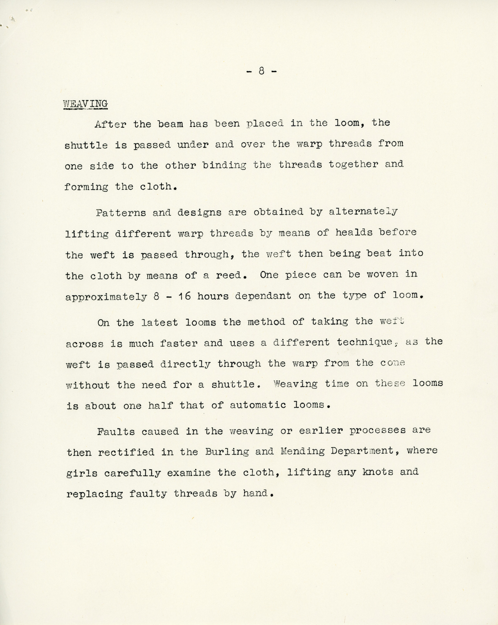 Main Processes in the Worsted Textile Spinning and Manufacturing Industry: Page 8 - Weaving
