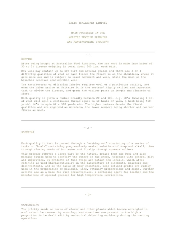 - Main Processes in the Worsted Textile Spinning and Manufacturing Industry
