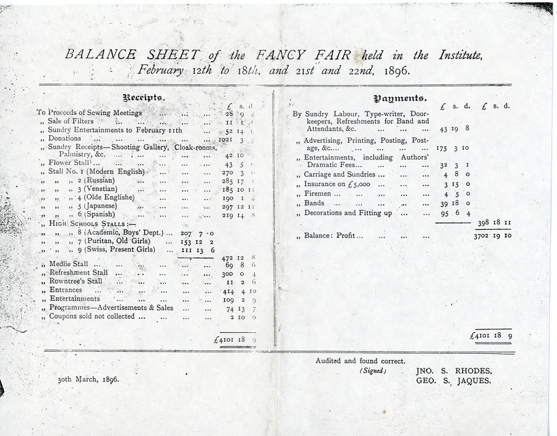 E2-004a-c: Report and Balance Sheet of the Fancy Fair