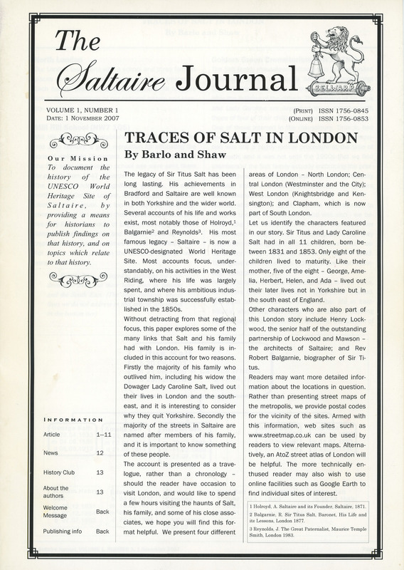 - The Saltaire Journal Vol.1 No.1 November 2007 Traces of Salt in London by Barlow and Shaw
