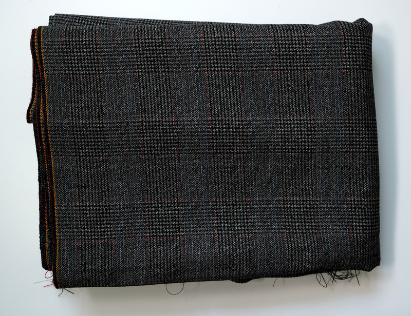 - Length of dark grey, dogtooth-pattern cloth: View showing cloth folded flat