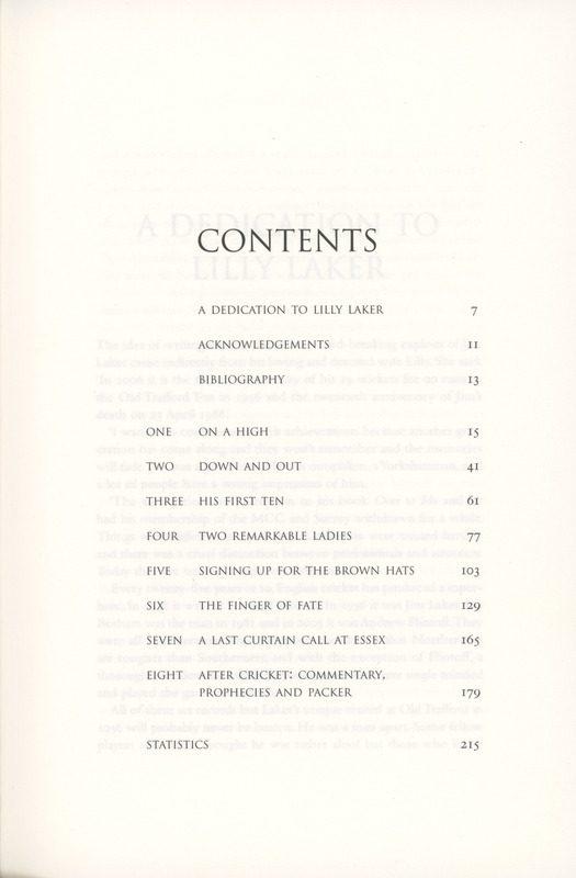 Jim Laker 19-90: Contents page