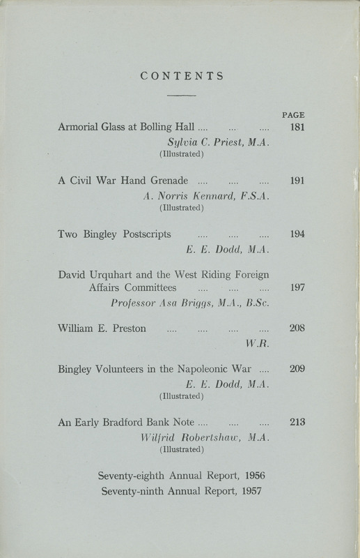 The Bradford Antiquary April 1958: Contents page