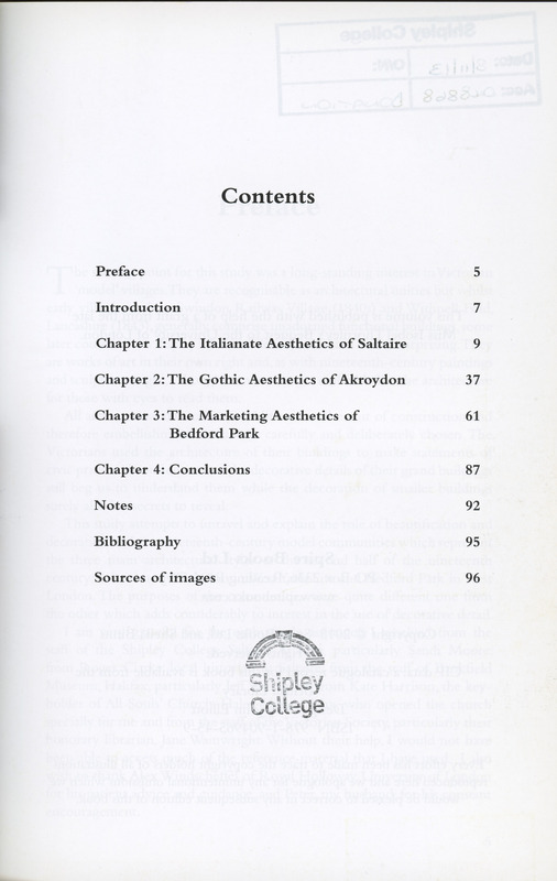 The aesthetics of Utopia: Saltaire, Akroydon and Bedford Park: Contents page