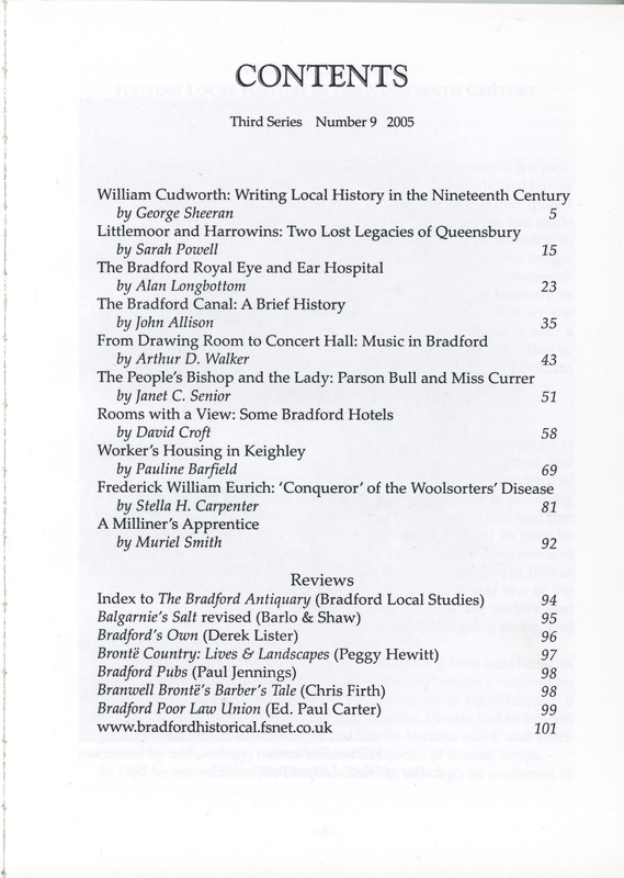 Bradford Antiquary Third Series No.9 2005: Contents page