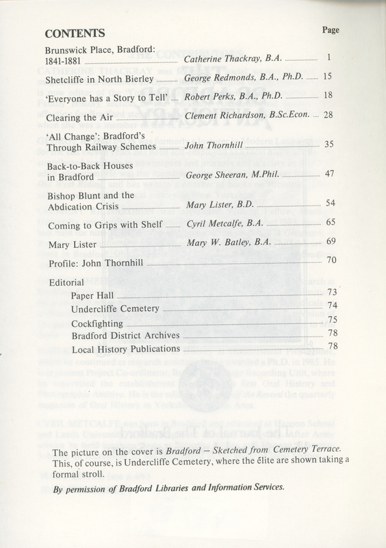 Bradford Antiquary Third Series No.2 1986: Contents page