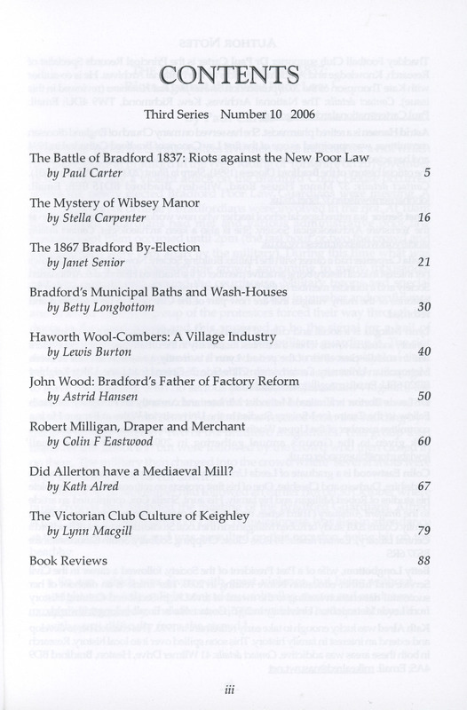 - Bradford Antiquary Third Series No.10 2006: Contents page