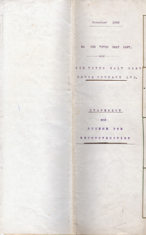 - Statement and Scheme for the reconstruction of Sir Titus Salt Bart & Sons Ltd: Front cover