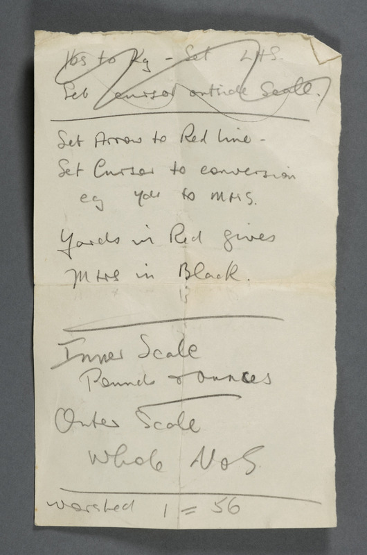 Fowler Textile Calculator with Leather case: Handwritten instructions found in case