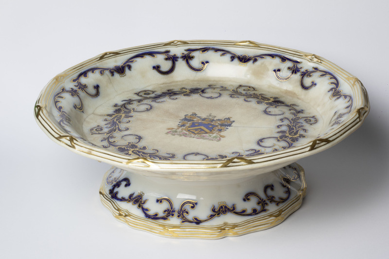 On both occasions the visitors stayed at Milner Field, the home of Titus Salt Junior and his wife Catherine. The Denys Salt Collection has a range of items from these visits. There is a poem celebrating the Prince of Wales opening of the Technical School, and photographs including the Princess of Wales planting a tree in Saltaire Park as her husband watches on while smoking a cigarette. There are other photographs of the Royal Yorkshire Jubilee Exhibition including one of Princess Beatrice arriving in style. There is also part of a dining set of Davenport crockery - bearing the Salt Family alpaca logo - used to serve the royals.