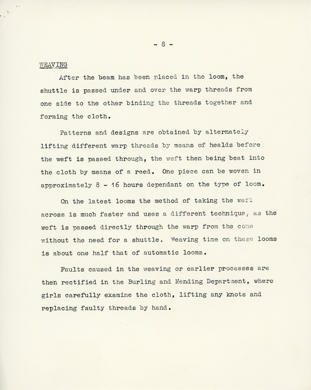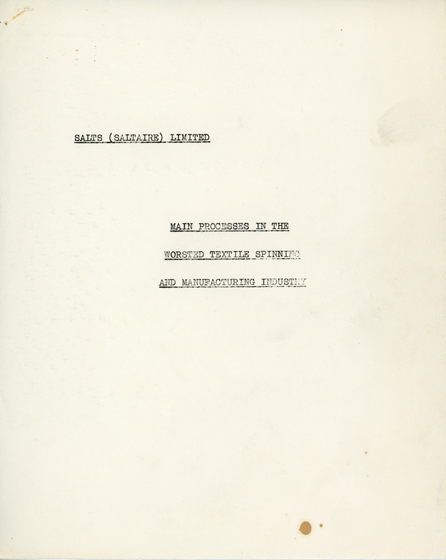 In the mid-twentieth century, Salts (Saltaire) Limited, the owners of Salts Mill at the time, produced a small booklet describing the different processes at the mill.