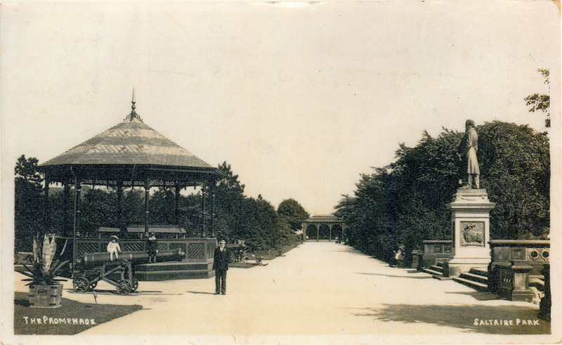 Saltaire Park opened in 1871 just over the River Aire from Salts Mill; James Roberts gifted the park to Bradford Corporation in 1920, renaming it Roberts Park after his deceased son Bertram.